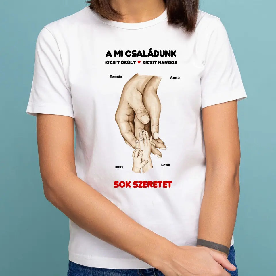 A mi családunk, kicsit örült, kicsit hangos, akár 4 gyerekkel póló - női, férfi