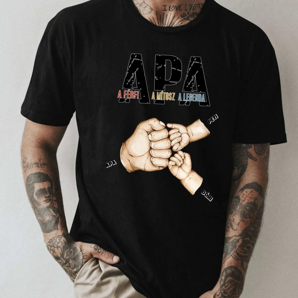 Apa, a Férfi, a Mítosz, Legenda - egyedi ökölpacsis póló névvel