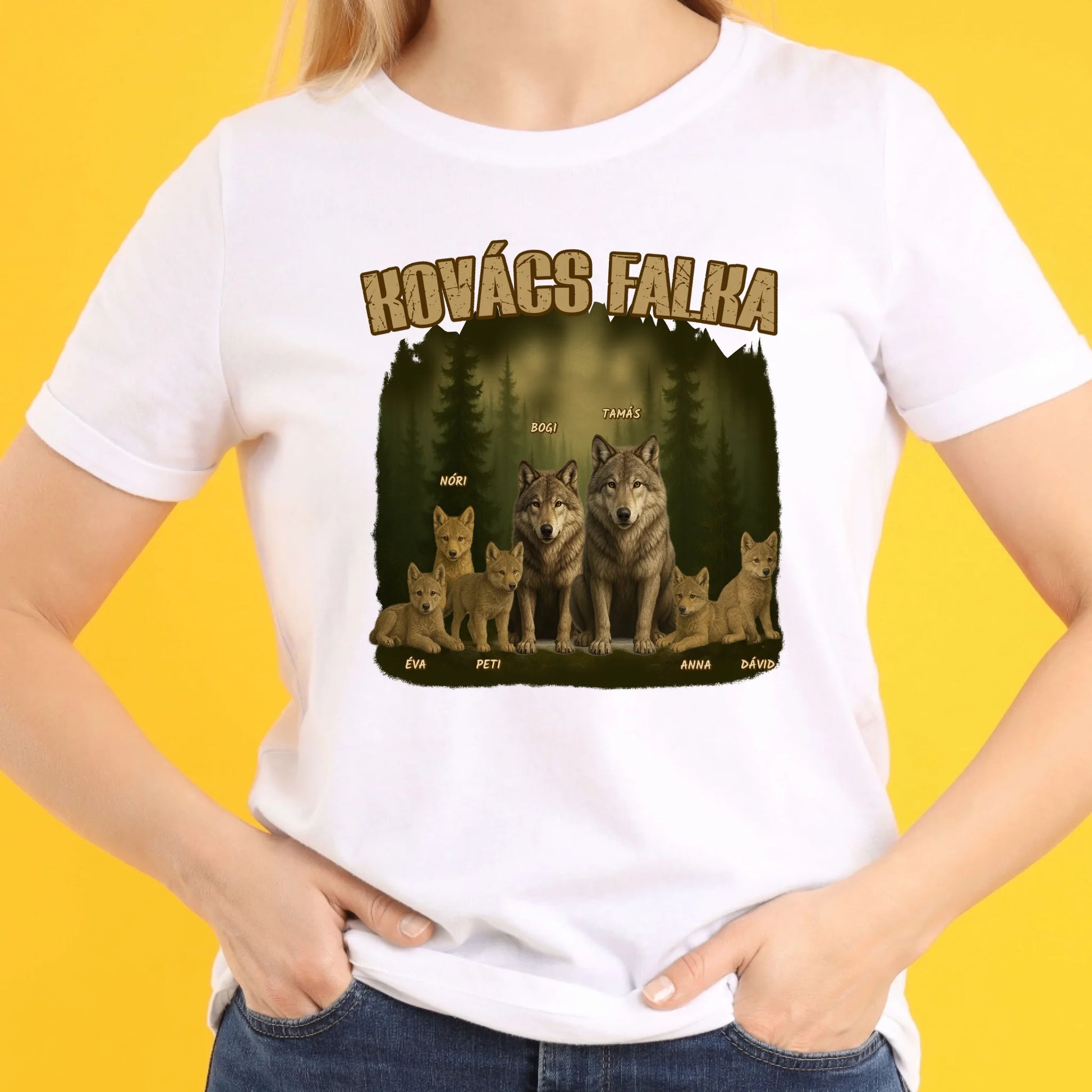 Apa és Anya falkája egyedi neves akár 8 gyerekkel - férfi. női póló