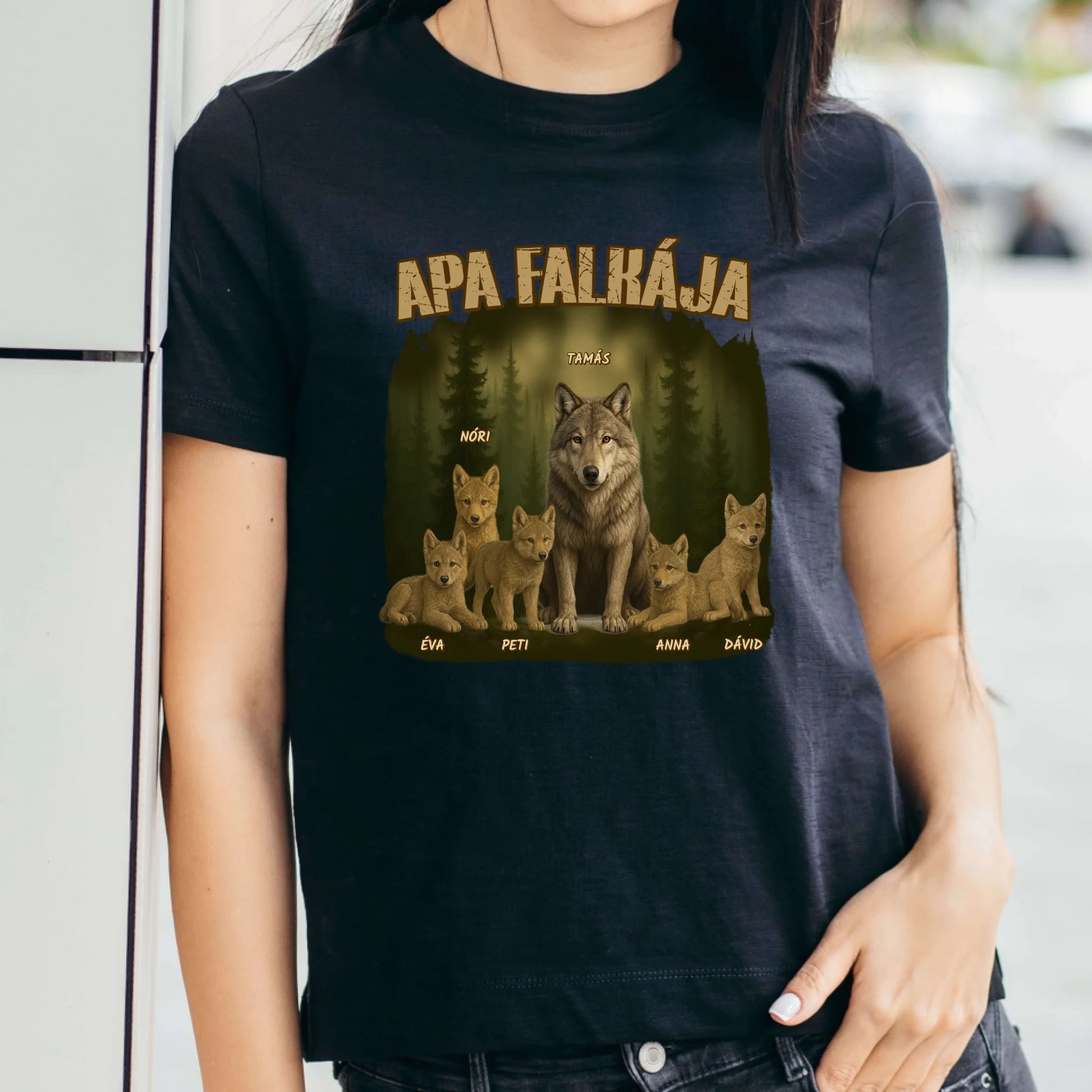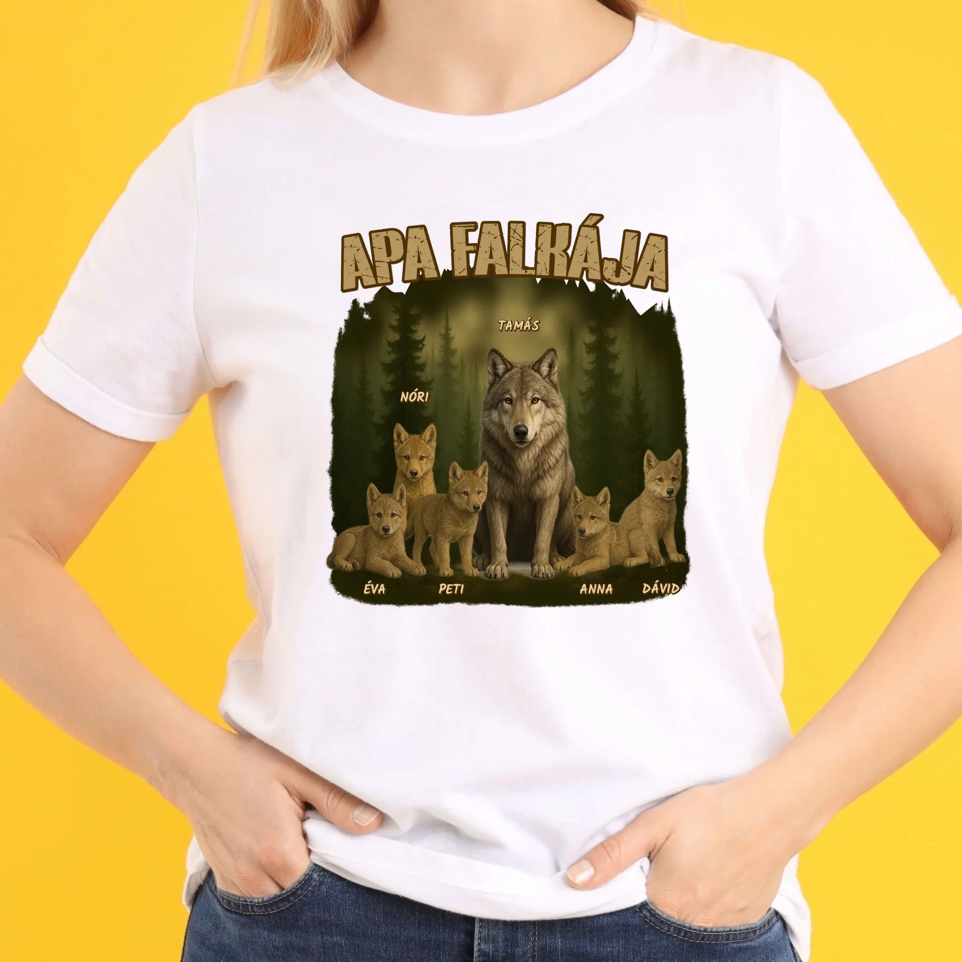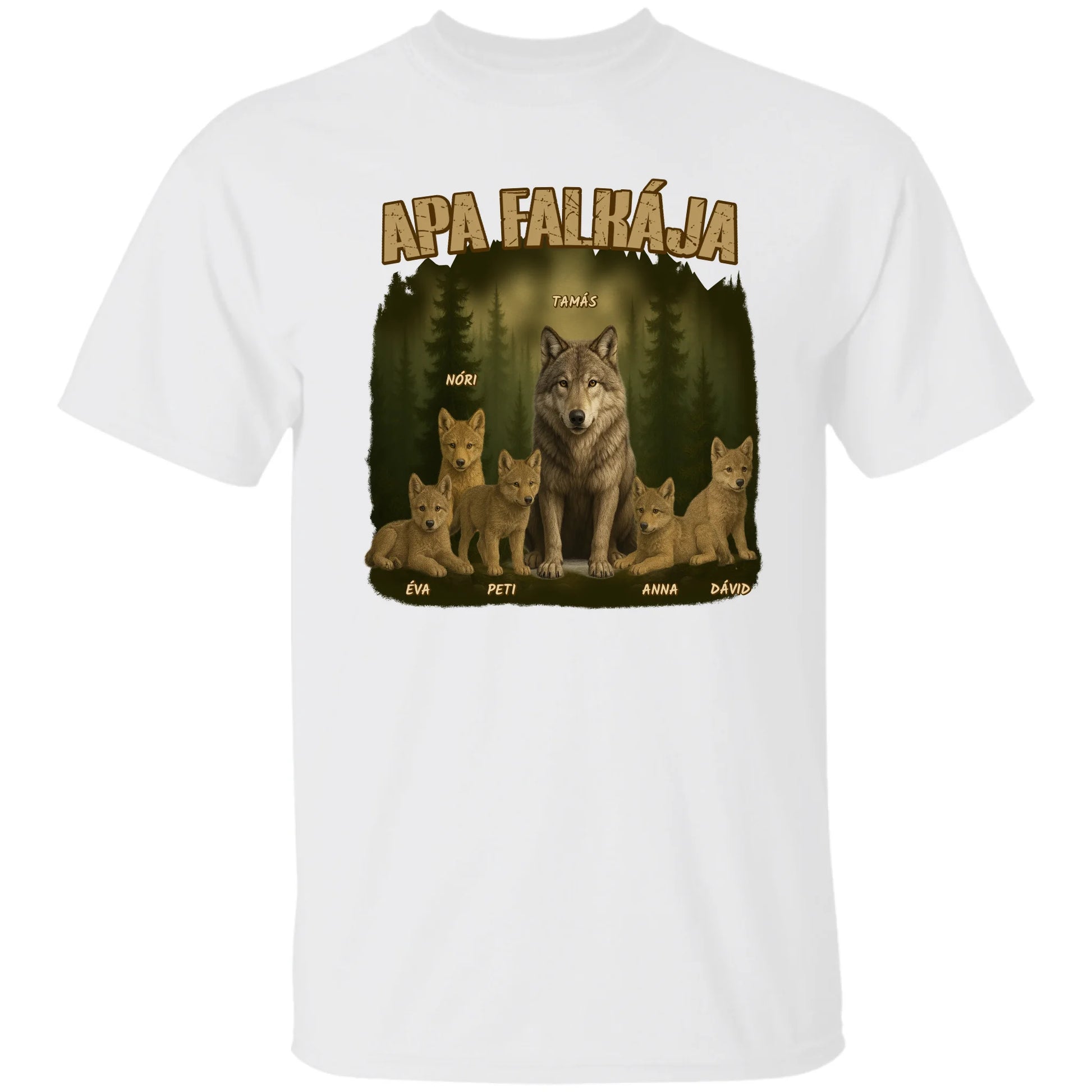 Apa falkája egyedi neves akár 8 gyerekkel - férfi póló