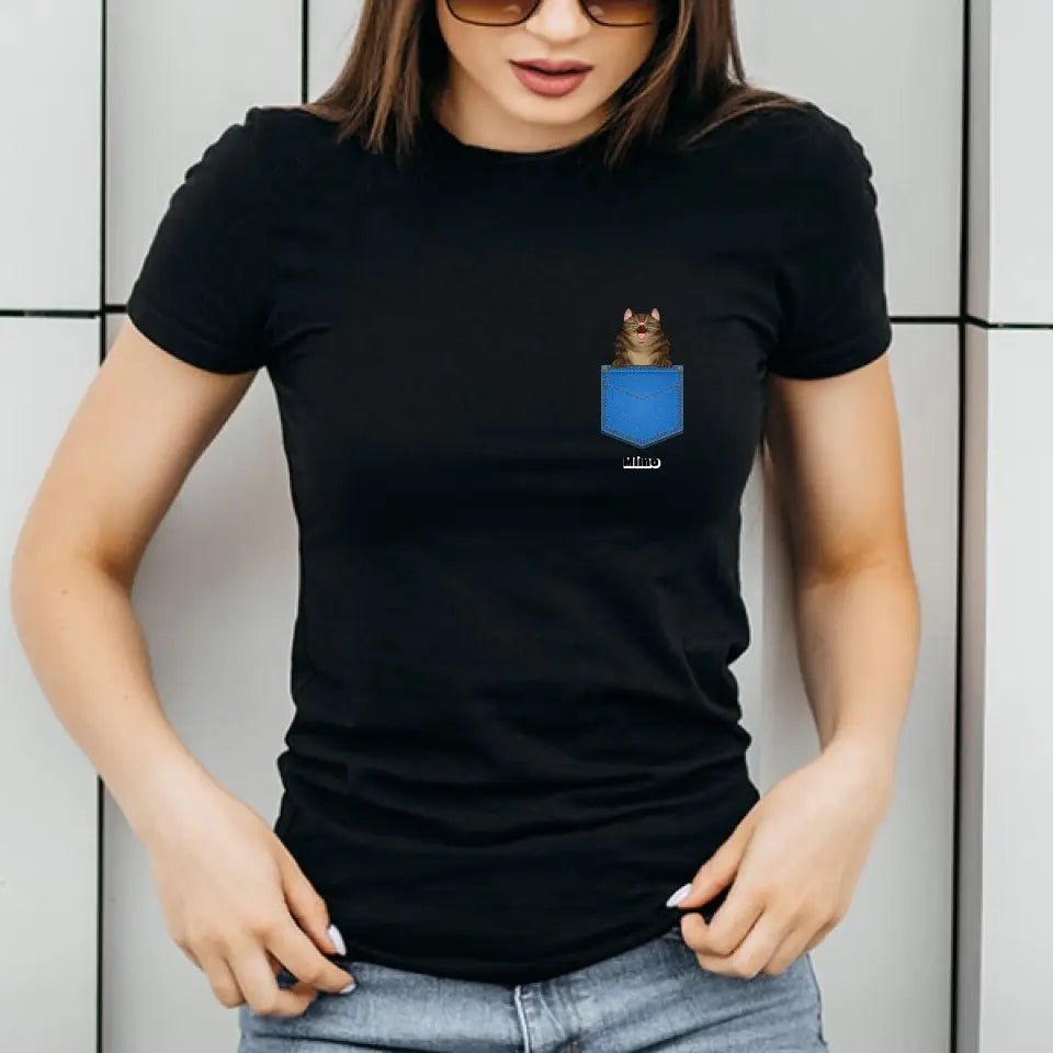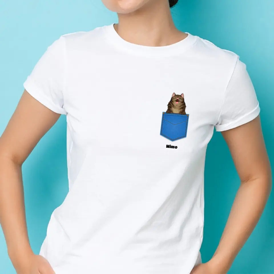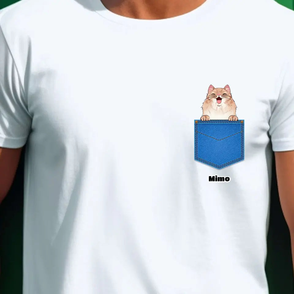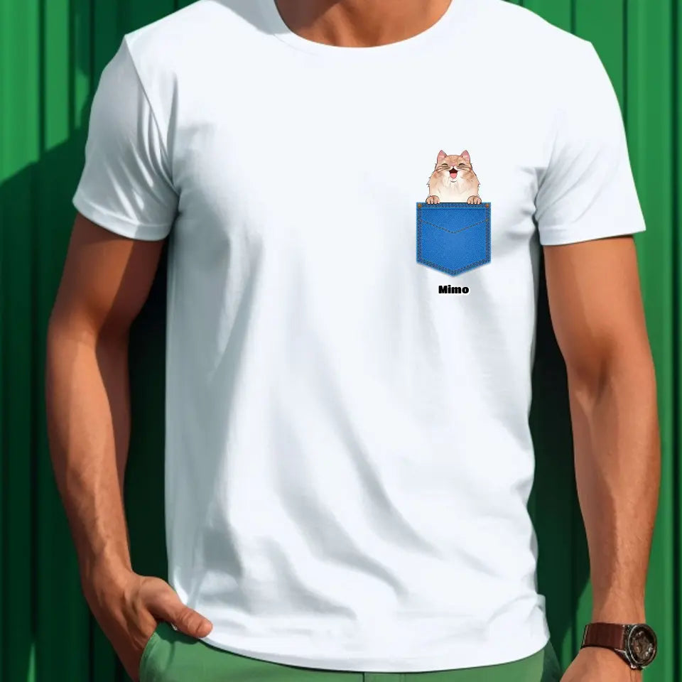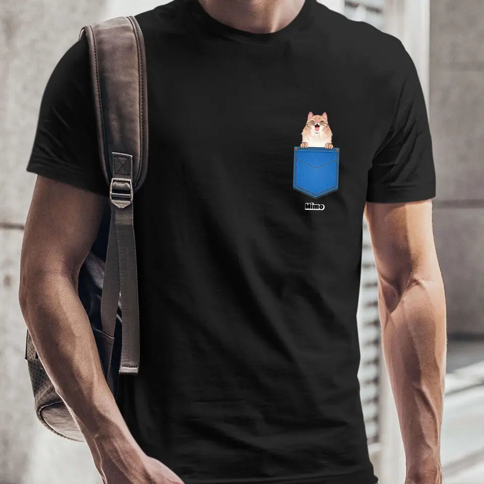 Egyedi házi kedvenc zsebes póló - macskával és kutyával - férfi, női