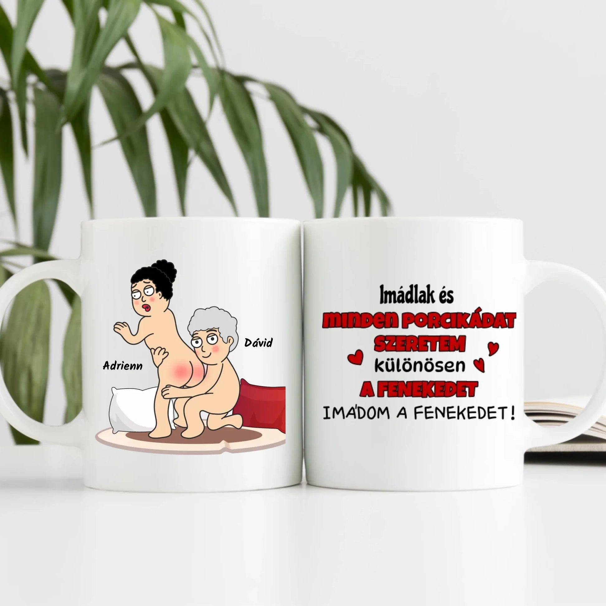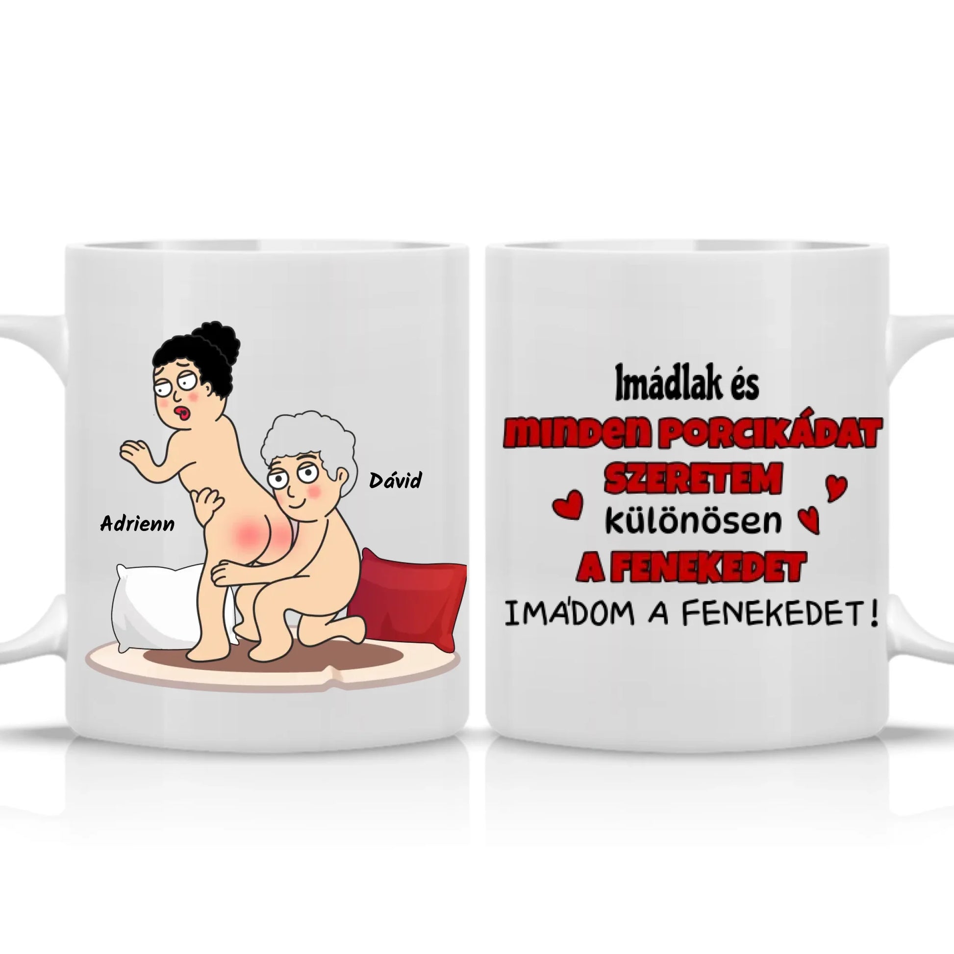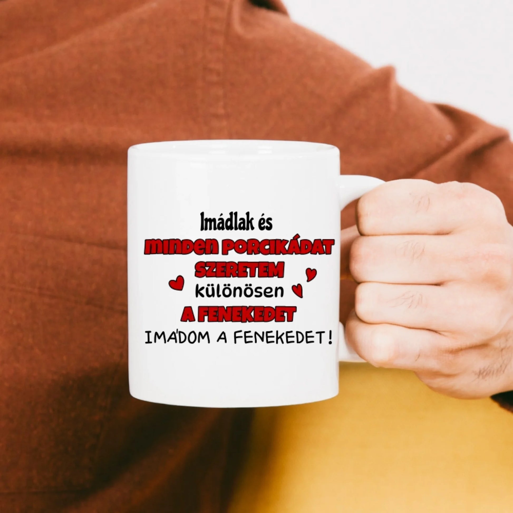 Egyedi - imádlak és minden porcikádat imádom, különösen a fenekedet - bögre