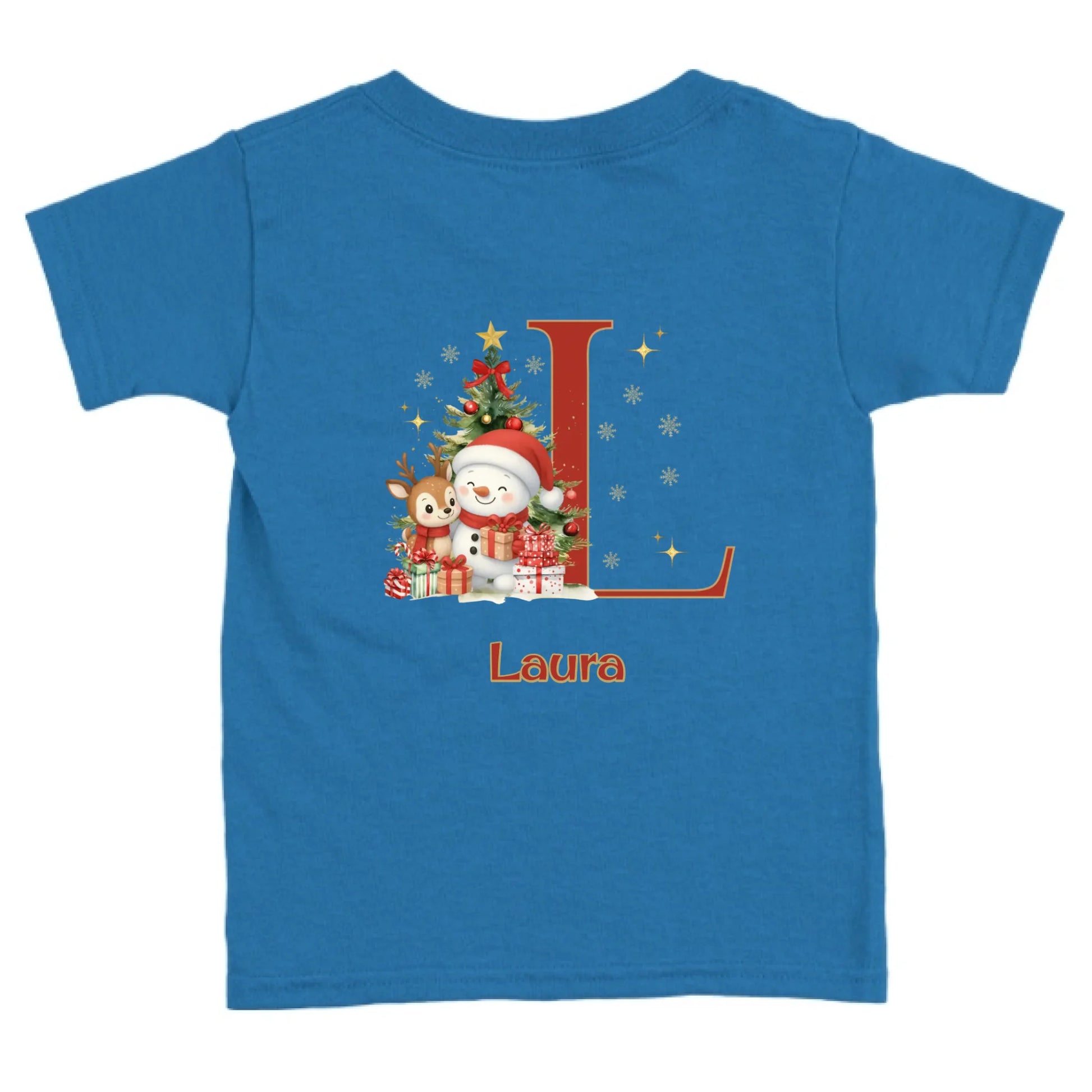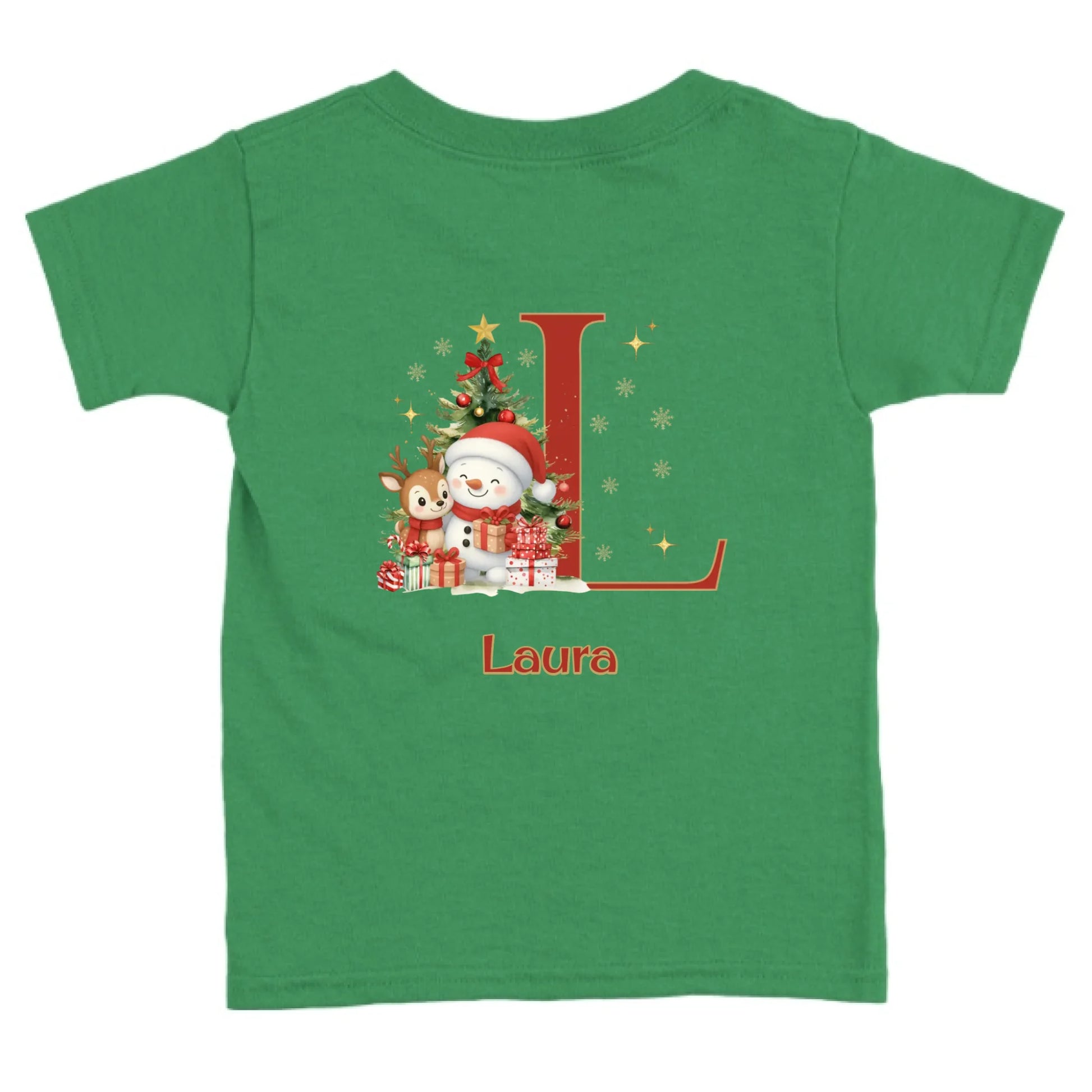 Egyedi monogramos és neves gyerek póló - hóember és szarvas