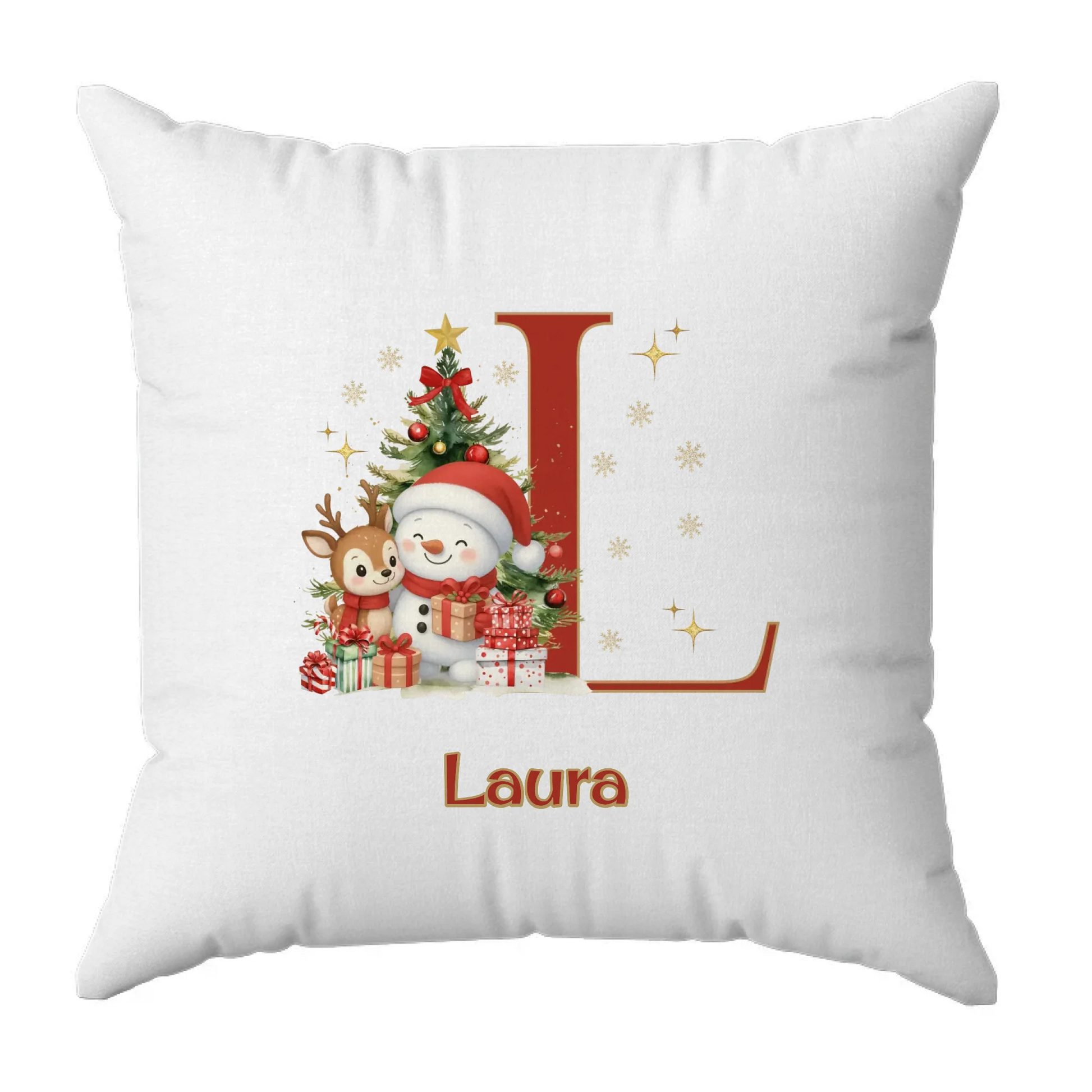Egyedi monogramos és neves párna - hóember és szarvas