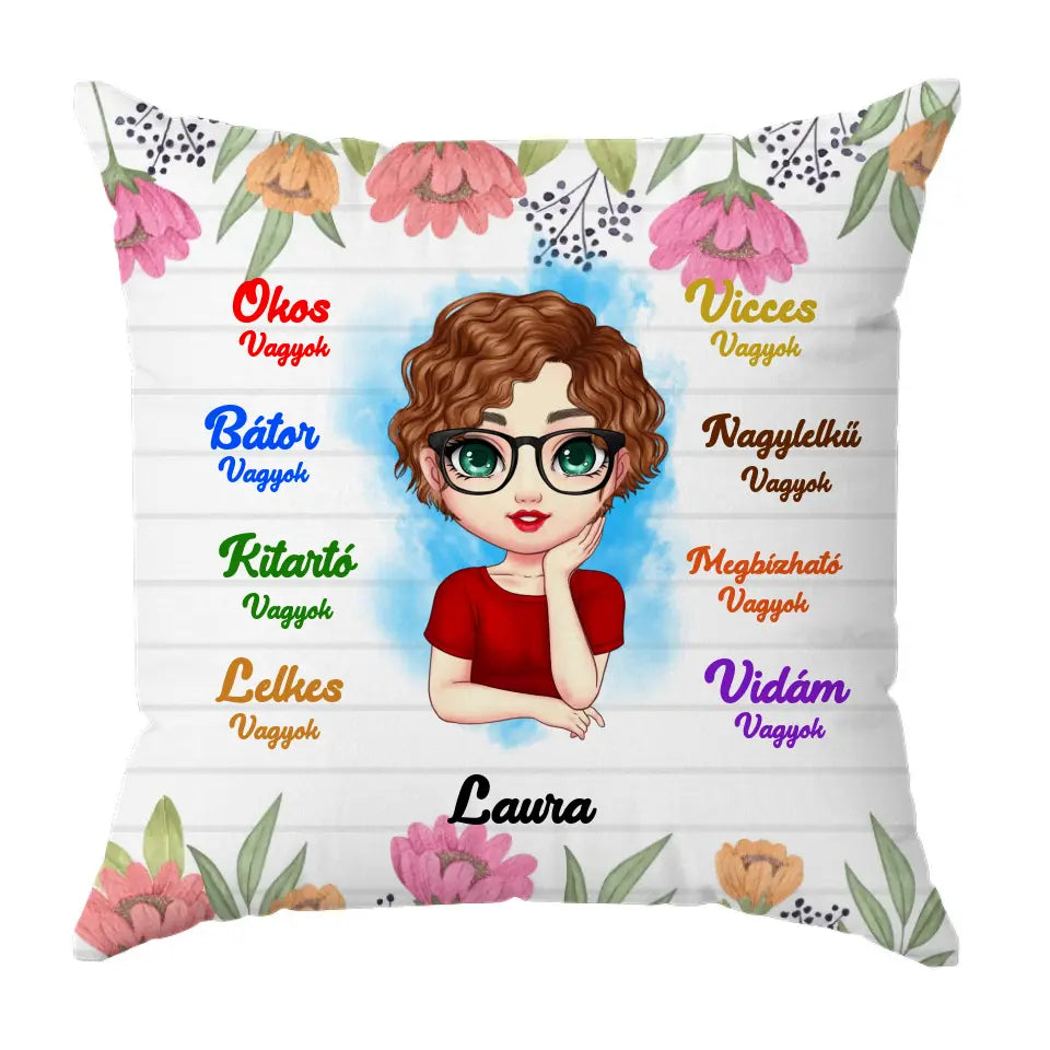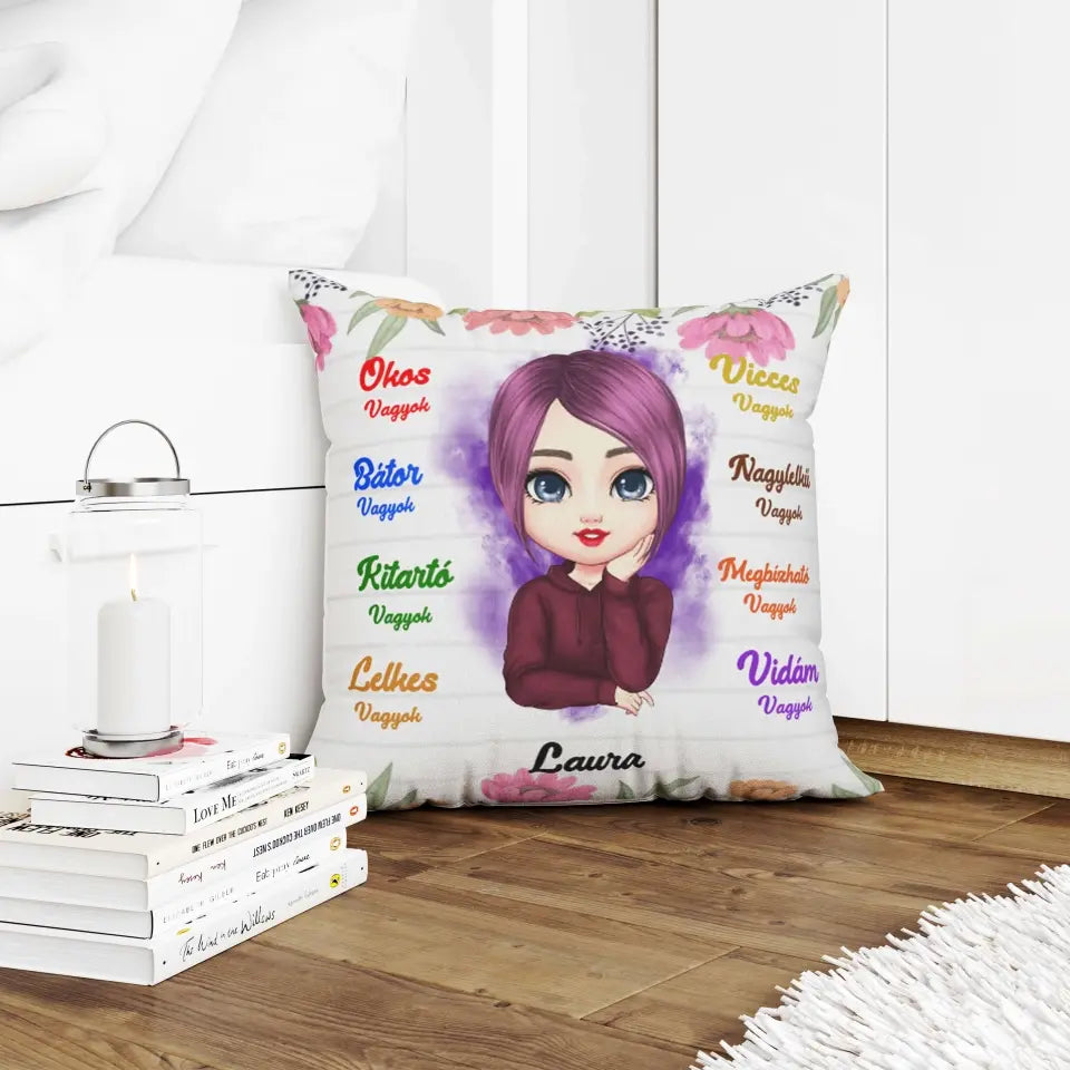 Egyedi tulajdonságok női és férfi karakterekkel párna