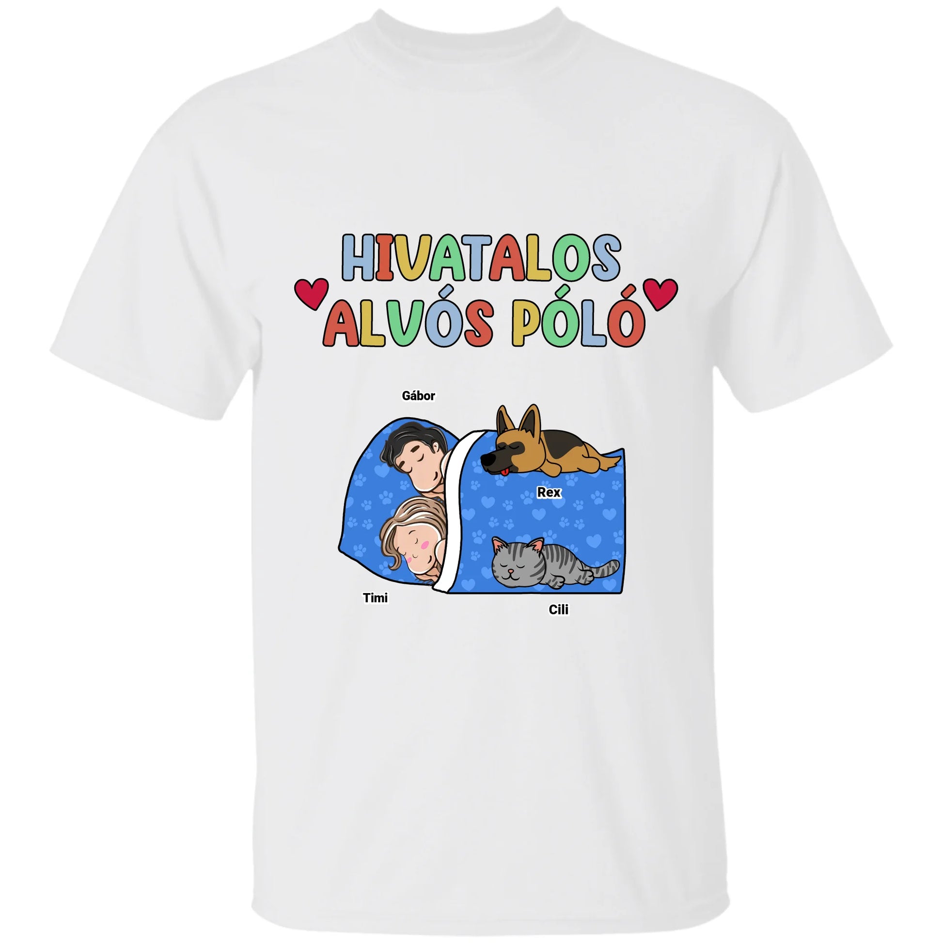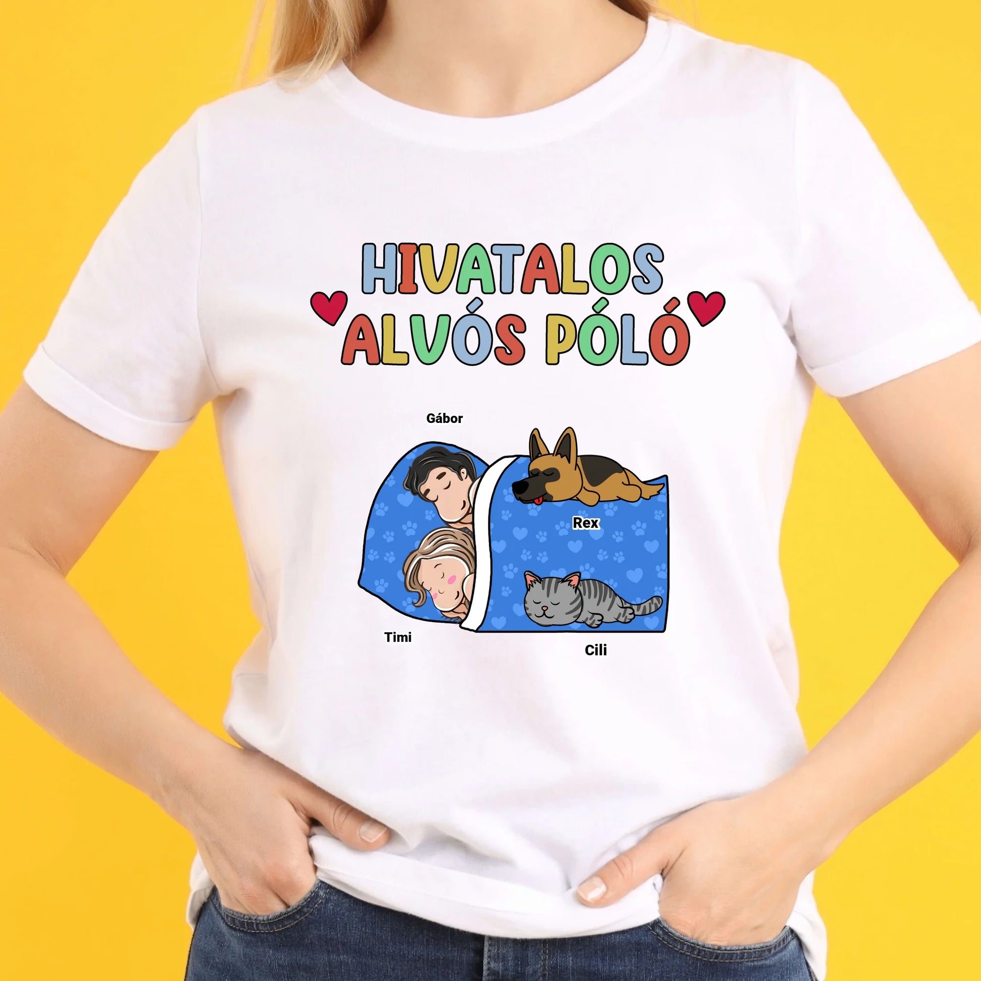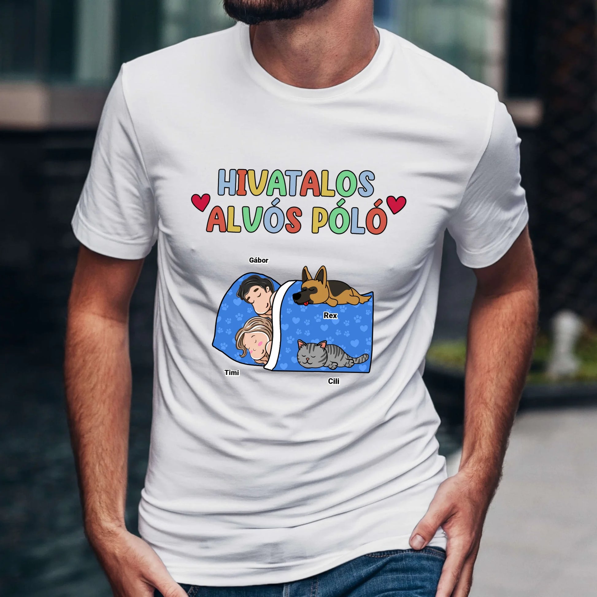 Hivatalos páros alvós póló egyedi gazdi és házi kedvenccel póló - férfi, női póló
