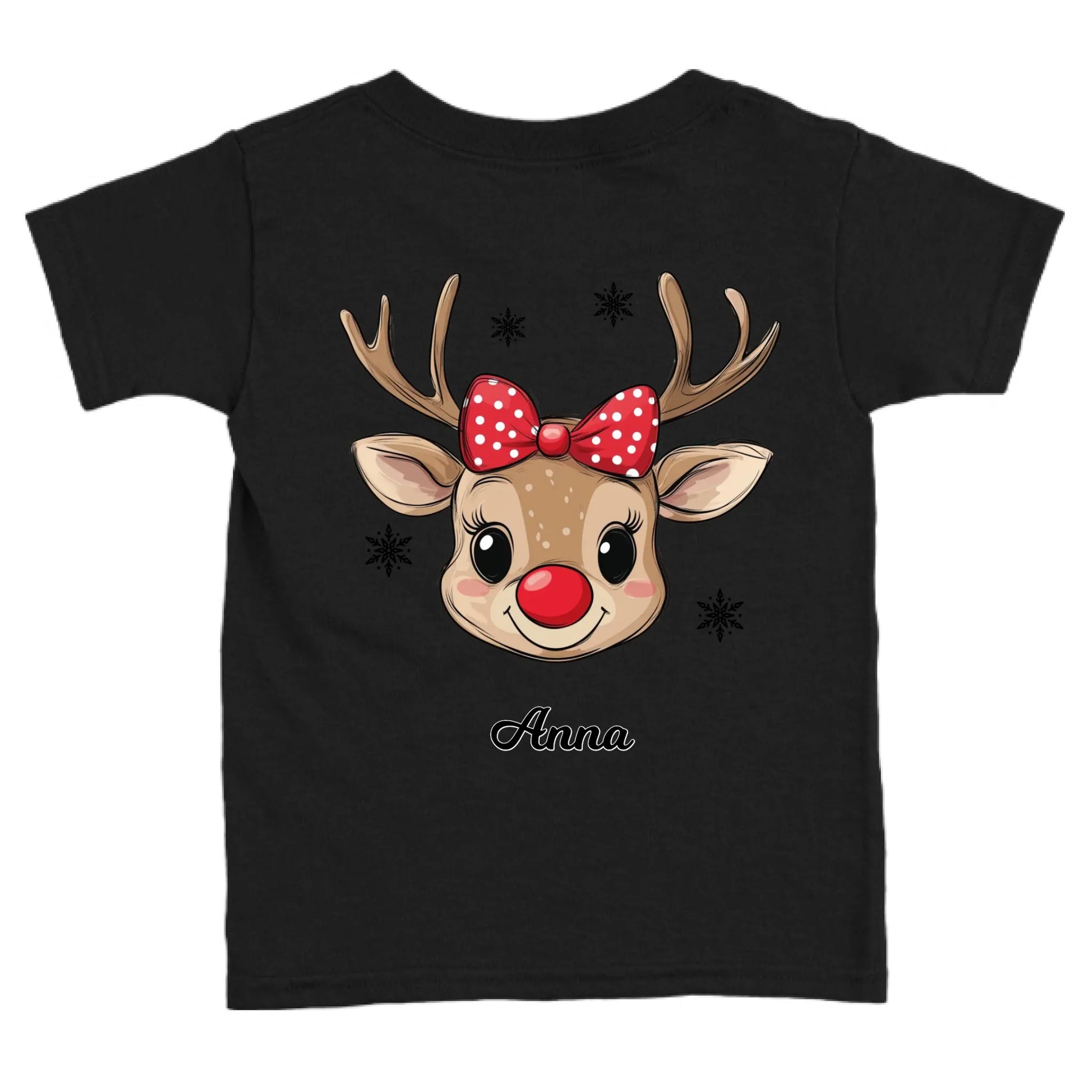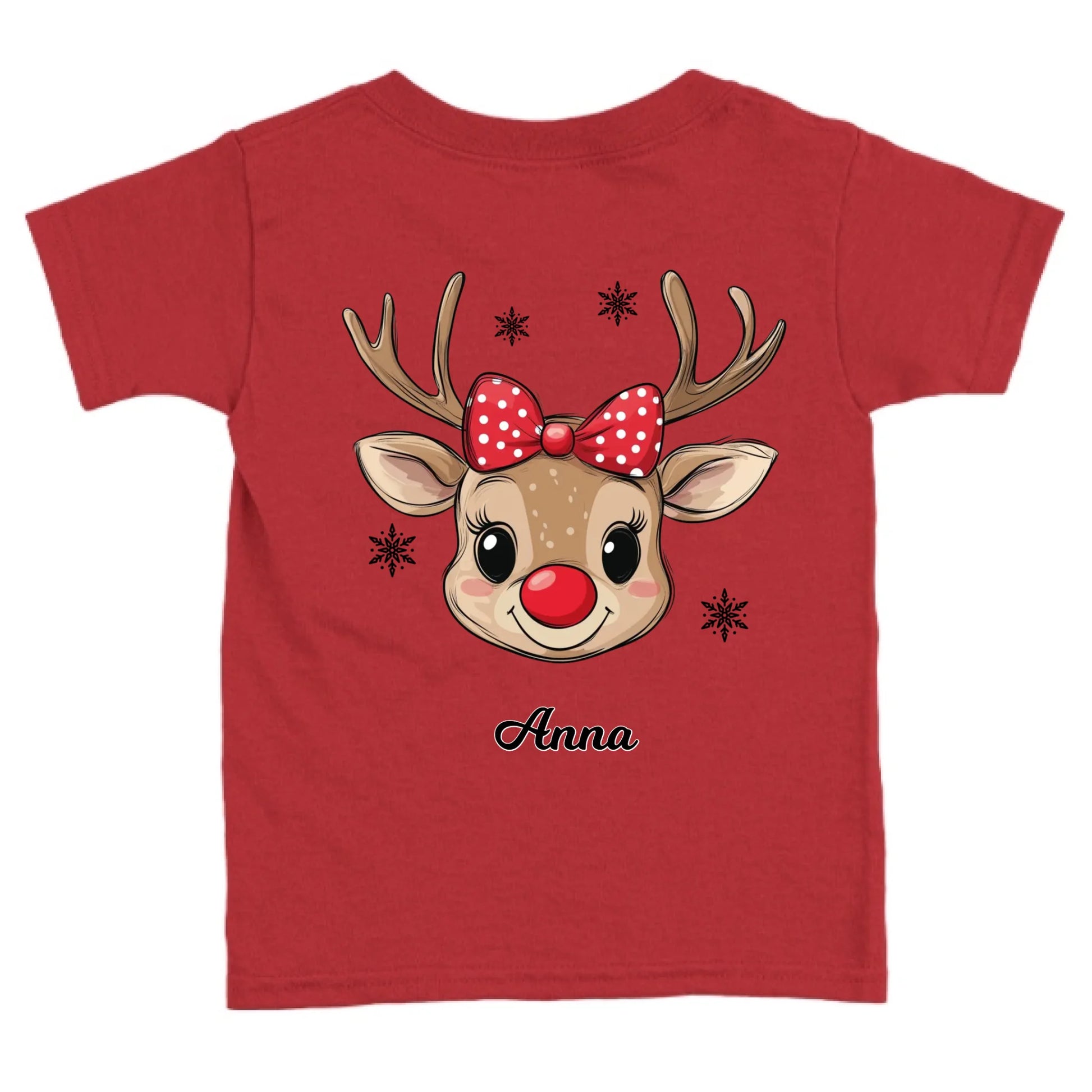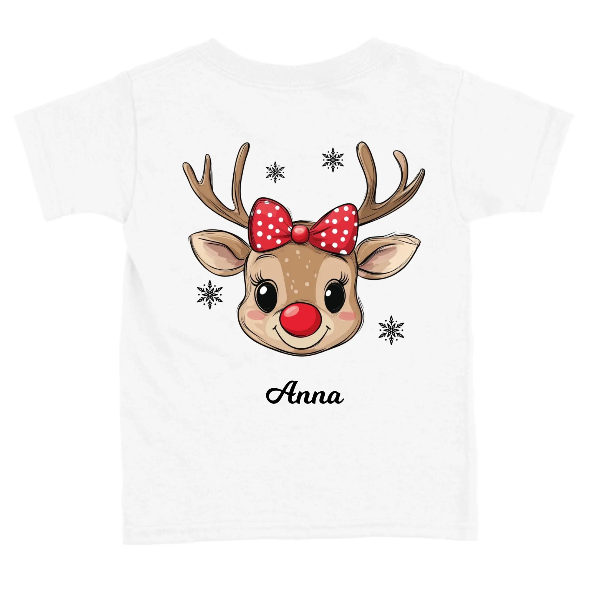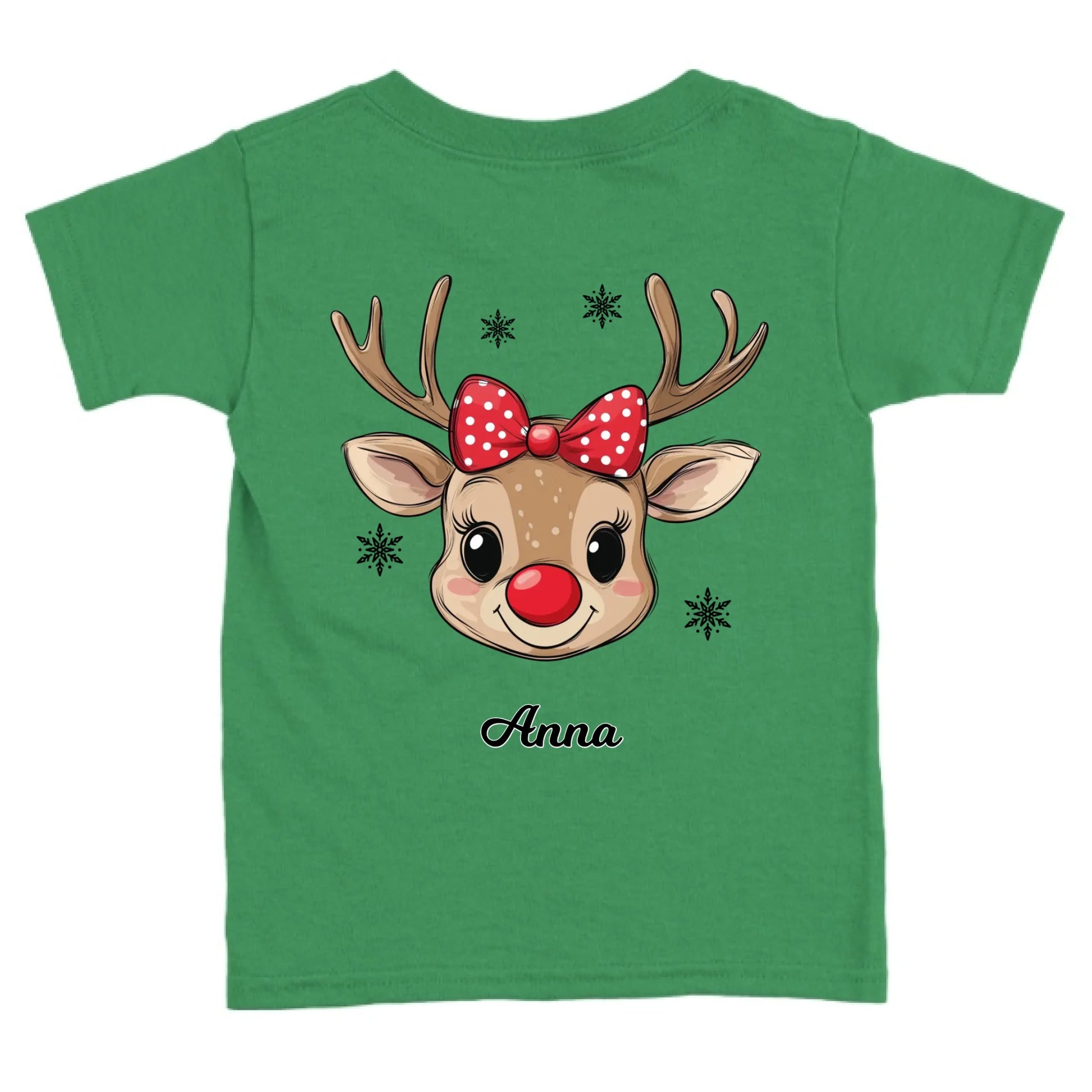 Rénszarvas lány és fiú karakterrel, gyerek unisex póló egyedi névvel