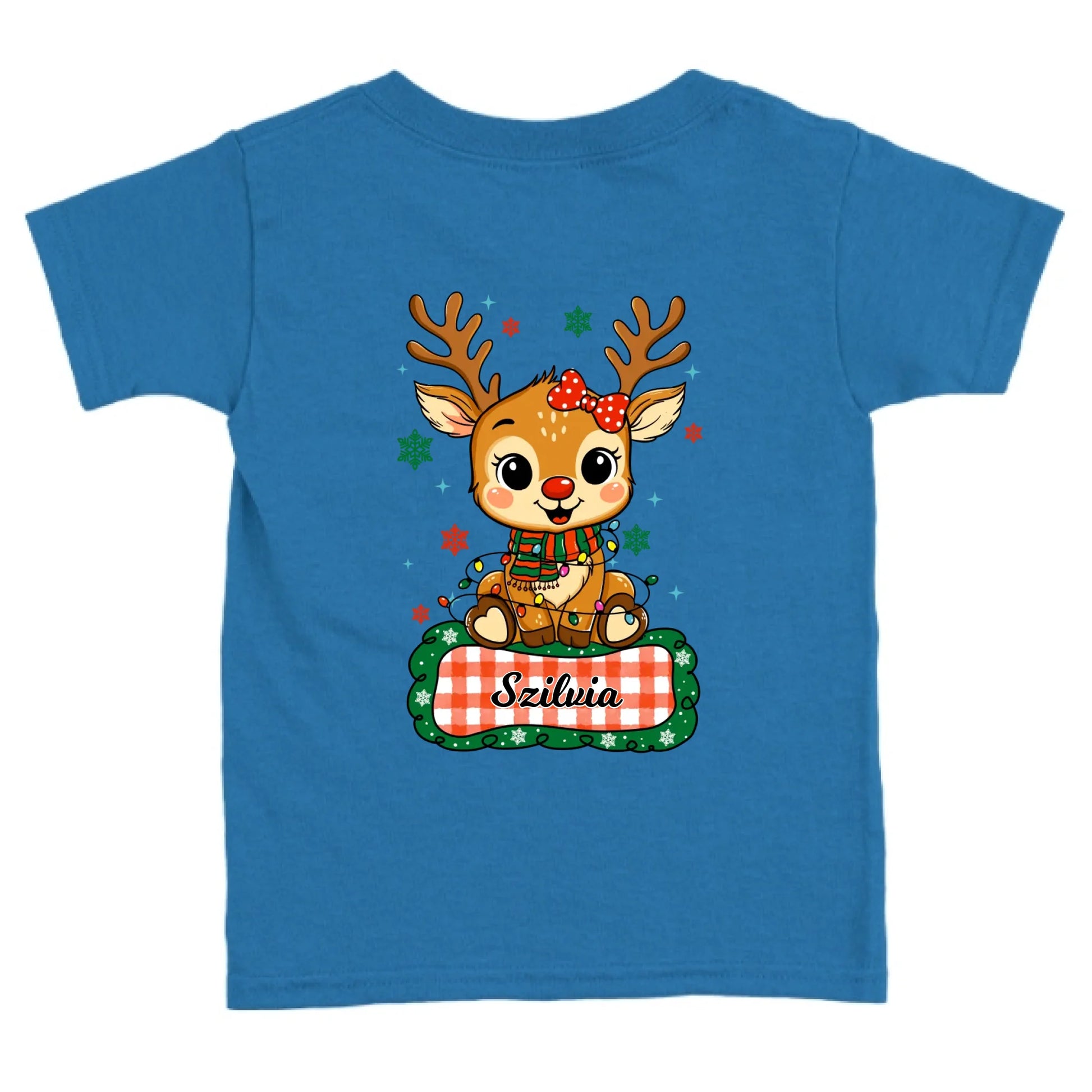 Szarvas lány és fiú karakterrel, gyerek unisex póló egyedi névvel